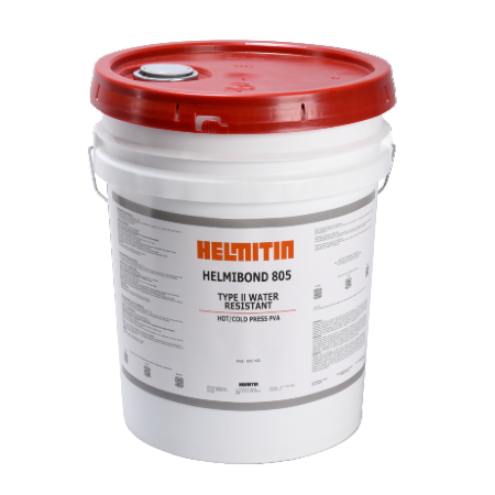 HELMITIM’s pre-catalyzed PVA adhesive with Type II water resistance. Glue spreader stable with long working times and short press times, HELMIBOND 805 is ideal for the hot and cold pressing of decorative overlays to particleboard and MDF on automated lines. An excellent choice for solid wood assembly applications where water resistance is needed. RF curable.
