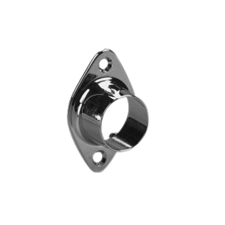 It mounts to studs or wall cleats using two of the included screws. The screw holes are on 2″ centers and allow this flange to be mounted with holes vertically aligned on a stud or laterally on a wall cleat. The closed design provides a secure locked-in end for closet rods.